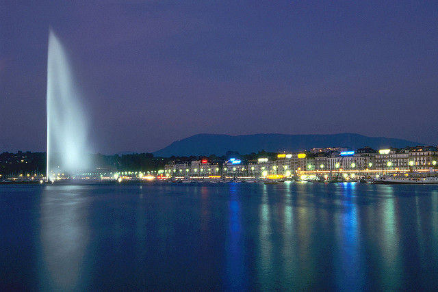 500公升噴水量的噴泉是由130馬力的電力推動為世界上最大的人工噴泉,那沖天而起的高大水柱,從湖面直射天際,蔚為壯觀。這個人工噴泉最初是1891年建成,當時所噴射的高度只有90米。1958年改建后至今。它的動力是兩組安裝在水下的水泵,總重為16噸,由每分鐘達1,500轉的500千瓦2,400伏的發動機帶動。每個水泵的功率為1,360匹馬力,噴泉的流量為每秒500公升,噴口處的水速達每小時200公里,進入噴水管中的水的壓力為16個大氣壓,水柱的高度在無風時可達140米,停留在空中的水量達7噸之多。水從噴嘴噴出達到頂峰再回到水面,每個回合為16秒。日內瓦湖是美麗的。自古以來,許多名作家、大詩人都贊美、謳歌過它。亨利•詹姆斯稱它是“出奇的藍色的湖”;拜倫則把它比喻成一面晶瑩的鏡子,“有著沉思所需要的養料和空氣”;巴爾扎克則把它說成是“愛情的同義詞”。其壯觀景象,從日內瓦各地都可以望得見,如今大噴泉于每年三月初到十月的第一個禮拜天為止,除了陰雨天之外,每天都準時做“噴水表演”,供民眾參觀。