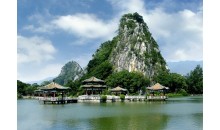 廣東肇慶市的星湖風(fēng)景名勝區(qū),是中國(guó)南方著名的旅游勝地。很多游人對(duì)它評(píng)價(jià)很高,認(rèn)為它兼有杭州西湖和廣西桂林的勝景。星湖位于肇慶市北郊4公里處,湖面約8000畝,大小和西湖相近。整個(gè)湖面被蜿蜒交錯(cuò)的湖堤劃分為五個(gè)湖:東湖、青蓮湖、中心湖、波海湖、里湖。湖堤總長(zhǎng)20余公里,堤上楊柳、鳳凰木成行,宛如幾條綠色帶子飄落在碧澄的水面上。