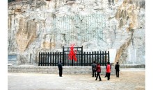 《水泊梁山記》是著名書畫大師范曾2002年專為水泊梁山風景區(qū)撰寫。先生懷著對英雄故里的一腔深情,慷慨揮毫、步其先人范仲淹《岳陽樓記》韻,全文368字,描述了水泊梁山河岳闊峻、草木蕭森的雄奇景象。《水泊梁山記》大型摩崖石刻,通高7米、長14米,距地面10余米,單字最大55厘米見方,最小字30厘米見方,通篇368字占地近100平方米,氣勢恢弘、蔚為大觀,形成了南有《岳陽樓記》、北有《水泊梁山記》的文化格局。為旅游勝地水泊梁山再添景觀,現(xiàn)為水泊梁山風景區(qū)的主要景點之一。與梁山粗獷豪放的山體及周圍環(huán)境交融,深化了景區(qū)的水滸文化內(nèi)涵,成為進入梁山風景區(qū)山寨景區(qū)的標志性景觀,其所在廣場,亦成為在梁山舉行的與水滸、旅游有關(guān)的大型集會的場所之一。