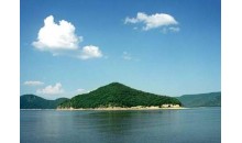 島上古木蓊郁,寂靜幽深,曲徑盡頭,濃蔭掩耳盜鈴映一座古廟,據說于清朝咸豐年建成,人們叫它“三清廟”。因當時廟中有一位道士,后來修行成仙,便起名為“道士山”。道士山名為山,實為一大島嶼。傳說中道士山廟里曾有口“九龍探母”的大鐵鐘,鐘聲宏亮,聲振大湖,回聲經久不絕。當今古廟已不復存在。古廟廢墟前庭寬敞,綠草如茵,幽雅清靜。