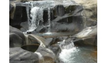 分布于饒平縣樟溪鎮青嵐溪谷的形態各異的石頭,最近被中國地質學院教授勘查考證后確認是冰臼。冰臼是冰川的直接產物,是在二三百萬年前,在巨厚冰層覆蓋,處于“封閉”和“半封閉” 狀態下,冰川融水沿著冰川裂隙向下流動,及在冰層中具有巨大壓力,并呈“圓柱體水鉆”方式,向下覆基巖及冰川漂礫,進行強烈沖擊,游動和研磨的作用形成的深坑,這些坑極像南方春米的石臼,因此稱為“冰臼”。
