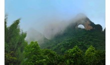 月亮山位于位于廣西壯族自治區桂林市陽朔縣十里畫廊景區末端。這里的風光古樸素雅、恬靜安逸。山頭上有一個天然的大石拱,兩面貫通,遠看酷似天上明月高掛。從不同的角度變換觀看,此洞形狀也不斷變化。