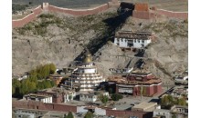 嘎東寺位于日喀則白朗縣年楚河以北16公里嘎東鎮境內。嘎東寺歷經寧瑪派、噶舉派、薩迦派,到十七世紀中葉開始盛行格魯派。寺中珍藏有舉世罕見的寶物,即該寺第四任堪布桑布欽布的兩條徑骨和空行母絲薩曲珍的頭顱。在桑布欽布右徑骨上端的骨縫四周天然生成著微小的釋迦牟尼、觀音菩薩、無量光佛、護法神、度母五尊佛像;左脛上端天然生成著微小的釋迦牟尼佛像和4個白色舍利;在度母化身空行母絲薩曲珍的頭顱上天然生成著三個藏文字母和度母像。原嘎東寺已被毀壞,1985年在原址上重新修建了嘎東寺。