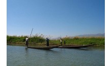 茵萊湖位于緬甸北部撣邦高原的良瑞盆地上,為緬甸第二大湖,緬甸著名的游覽避暑勝地。湖面海拔970多米,南北長14.5公里,東西寬6.44公里,三面環山,來自東、北、西三面的溪流注入湖中,向南匯入薩爾溫江。湖水清澈,陽光直射湖底。湖中生活著20多種魚,有豐富的水產資源。