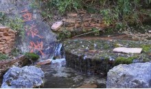 湯泉泉池用巨石甕成,冬日水氣為云,繚繞天際,每當紅日凌空,彩虹映照,俯視泉池,旭日泉底,這便是昔日東陵八景之—一湯泉浴日。春秋日,池水清澈見底,無數(shù)氣泡從水底冉冉升起,猶如串串珍珠,如將銀幣投入水中,則見翻飛如蝶,緩緩下降,蔚為奇觀。