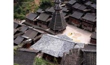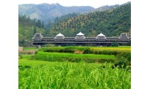 車江侗寨 也稱“千戶侗寨”,是全國侗族人口居住最密集的地方。從榕江縣城過了榕江大橋往北就是車江萬畝大壩。都柳江支流寨蒿河流經筆架山下,連接沿河5個村的侗寨。因河中有巨石三塊,“三寶”因此得名?!叭龑殹倍闭d延約有15千米,除非有很充裕的時間,否則很難一一走到。離榕江縣城5千米左右可以看到一座木結構寨門,上面寫著“天下第一侗寨”,這是較有規模的古榕群景區。