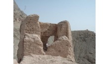 遺址位于新疆若羌縣城西南約40余公里處,在一座海拔約3000米的峭壁南邊的山頂上,只有唯一的一條長約500米左右小道沿著山脊的自然走向通往城堡。山脊兩側(cè)的懸崖深約100米,兩邊有鷹嘴石、一線天等自然景觀,怪石林立,犬牙交錯,地勢十分險(xiǎn)峻,頗有一夫當(dāng)關(guān)、萬夫莫開之勢。山頂經(jīng)人工削平,四周有石塊壘砌的圍墻,圍墻周長300米,一座城門面北與通過山脊而來的小道相接。