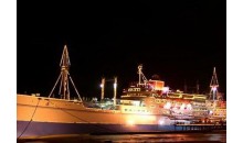 “海上城市”原名“巴西瑪魯”,是日本一艘國(guó)際遠(yuǎn)航客貨輪,已有四五十年的歷史,船長(zhǎng) 156米、寬19.6米,共有七層,排水量達(dá)1.7萬(wàn)噸。1954年下水,1951年載中日友好青年代表團(tuán)訪問(wèn)中國(guó),后改為旅游船,停泊在日本旅游勝地鳥(niǎo)羽市港灣,1997年由珠海華瑩集團(tuán)引進(jìn),次年落戶(hù)于湛江,與雄偉的南海艦隊(duì)軍港隔海相望。
