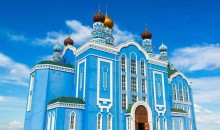 圣瓦西里大教堂(華西里·伯拉仁內教堂)位于俄羅斯首都莫斯科市中心的紅場南端,緊傍克里姆林宮。由俄羅斯建筑師巴爾馬和波斯特尼克根據沙皇和伊凡大公的命令主持修建,于1560年建成。教堂的名字根據當時伊凡大帝非常信賴的一位修道士瓦西里的名字而取。中央的塔高65米,共有九個金色洋蔥頭狀的教堂頂。這九個教堂頂不是一開始就有,而是后來分別加上去的