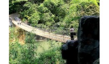 仙人橋位于縣城西南40余公里處的洛陽鎮(zhèn)半星雷屋村,高山斜坡上、綠樹掩映間,有大、小拱天然仙人橋兩座,屬石灰?guī)r溶蝕地貌景觀。大拱橋高70米,寬50米,長150米,小拱橋更為壯觀,高約138米,內(nèi)拱高106米,寬53米,長約156米,在大拱仙人橋的入口處,有峰巒延綿,勢如雄獅回首南望,獅身高約38米,長約60米,獅頭、獅眼因石灰?guī)r溶蝕脫落而成,形成了“雄獅回頭”的獨特景觀。