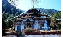 位于墨脫村南則瑪拉山上。是墨脫最大的寺院。建寺時間是在門巴東遷后不久,距今約8代人。據傳是由甘布寺中的活佛甘布建筑的,最初是一座有12面墻和東西南北四門的石木結構三層建筑,內有鍍金銅佛像多座。1950年毀于地震,后重修為東西兩門建筑。仁欽崩寺的建寺時間是在門巴東遷后不久,距今約8代人。這一建筑物很有特色,值得一看,寺院內外景色優美,古木鮮花將這里裝扮的古樸而典雅,讓人沉浸在這古老的文化和美麗的景色之中。