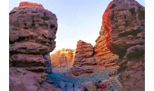 海森楚魯怪石城位于阿拉善右旗努日蓋蘇木境內,距旗府所在地220公里。“海森楚魯”為蒙語音譯,意為象鍋一樣的石頭。在方圓二十余公里的地方,大到幾十立方,小到拳頭大小的風蝕原石隨處可見, 怪石林立,形態各異,有象臨空欲飛的碩大雄鷹,有象“蘑菇云”……各式各樣,栩栩如生,與云南石林,黃山怪石相比也并不遜色,使人感到大自然神賜般的無窮魅力。