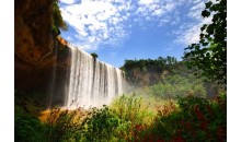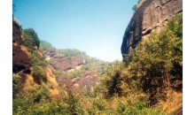 虎嘯龍川大峽谷坐落在武夷山自然保護區內,這里峰巒疊翠,繁花掩映,珍禽異獸,疊泉流瀑。諸多景致為一體,耳聞鳥鳴泉吟,目染峻山清澗。從跨入景區起,就進入了盆景和瀑布的世界。古木參天,藤蘿盤繞,集千年的靈氣而形神兼俱,美輪美奐的瀑布順著怪石嶙峋的山體銀鏈垂空,飛花濺玉,在陽光的照射下襯著丹霞的山體折射出迷人的七彩光暈,美不勝收,宛如仙境。