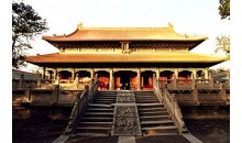 大成殿是孔廟的正殿,也是孔廟的核心。唐代時(shí)稱文宣王殿,共有五間。宋天禧五年(公元 102年)大修時(shí),移今址并擴(kuò)為七間。宋崇寧三年(公元1104年)徽宗趙佶取《孟子》:“孔子之謂集大成”語義,下詔更名為“大成殿”,清雍正二年(公元 1724年)重建,九脊重檐,黃瓦覆頂,雕梁畫棟,八斗藻井飾以金龍和璽彩圖,雙重飛檐正中豎匾上刻清雍正皇帝御書“大成殿”三個(gè)貼金大字。