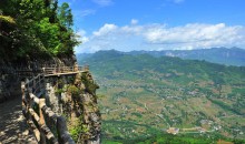 又名復真觀,這座在武當山獅子峰60度陡坡上的古代建筑,被當今建筑 學家贊譽為:利用陡坡開展建筑的經(jīng) 典之作。 復真觀背依獅子山,右有天池飛瀑,左接十八盤棧道,遠 眺似出水芙蓉,近看猶如富麗城池。古代建筑大師們,巧妙地利用 山形地勢,不僅創(chuàng)造出1.6萬平方米的占地面積,而且建造殿宇200 余間,結構出“一里四道門”、“九曲黃河墻”、“一柱十二梁”、 “十里桂花香”等著名景觀。