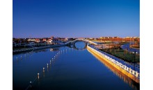 克拉瑪依河又名穿城河,克拉瑪依市區(qū)境內(nèi),交通極便利。克拉瑪依河從城區(qū)東北入境,在城中曲折穿越后城區(qū)西南進(jìn)入西郊水庫,全長8.51千米,河寬約15米。友誼橋是進(jìn)入克拉瑪依市的門戶,橋主體魏斜拉橋,風(fēng)格獨(dú)特,美觀精巧。全橋采用高桿燈及彩球射燈照明,塔柱安裝霓虹軟管裝飾燈,斜拉索安設(shè)跑燈帶,成為克拉瑪依河上一重要的景點(diǎn)。其余四座交通橋?yàn)闇?zhǔn)葛爾橋,昆侖橋,勝利橋,和西環(huán)橋。