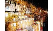 灣仔海味市場位于灣仔碼頭對面,這里地方十分整潔,鋪位排得十分整齊,數目不下百個,主要經營海味干貨,如魚翅、鮑魚、海參、咸魚、瑤柱、魷魚等。大部分干貨是從外地進口,除了海味干貨以外還有一些小飾物如珍珠項鏈、奇形貝殼、特色耳環等。 由于這個市場具有濃厚的地方特色,且與澳門隔河遙望,所以每天都吸引到大批游客探訪拍照留念。
