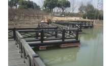 九曲橋九曲十八彎,且每個彎曲的角度大小不一,有大于90度直角的,也有小于90度直角的。九曲橋如今的橋面為花崗石板,每一彎曲處一塊石板上均雕刻一朵季節性花朵,如正月水仙、二月杏花、三月桃花……直到十二月臘梅;并在九曲橋頭尾的兩塊石板上各雕刻一朵荷花。在湖心亭茶樓門前的一段橋面,中間雕刻一朵荷花,四角則分別雕刻彩云。