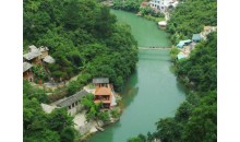 桃源河峽谷位于修文扎佐鎮東面一條“處女”峽谷地帶。由扎佐前去10公里,距貴陽市區40多公里。該景區的特色是谷秀水美,深淺適度、流淌多變的河水似乎是天賜人用的漂流區。一道清澈迷人的清泉,蜿蜒連綿,時而奔騰湍急,時而水平如鏡。沿河兩岸的奇峰、絕壁、飛泉令人稱奇叫絕。驅車過扎佐街上,車行3公里至六屯與桃源分道的岔路口,右轉朝桃源方向再行7公里便進入了林茂谷深的桃源河峽谷。