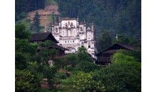 地坪風雨樓 這是貴州省最大、造型最美的風雨橋。長達50多米的地坪風雨橋始建于清光緒二十年即公元1894年,1959年毀于火災,1964年重建。整座橋不用一釘一鉚,而運用杠桿力學原理,將大小不一的柱、枋、檁、凳、欄桿等全部用杉木鑿榫穿枋構成。橋體為長廊式木結構,橋上有一大兩小共三座橋樓。居中的大橋樓是鼓樓式建筑,兩邊的橋樓皆為三層重檐雙斜面屋頂。