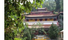 梨花塢又名大梨園,塢中建有同名寺院,主建筑慈云閣層樓高聳,飛檐翼然,古樸莊嚴(yán),為大慈大悲觀世音菩薩安享人間香火之所;附屬建筑藏經(jīng)樓、讀畫(huà)樓、醉月樓、菩提樓、養(yǎng)云池、雨花亭、瑞雪嶺等亭臺(tái)樓閣皆依山構(gòu)筑,錯(cuò)落有致而又此呼彼應(yīng)地構(gòu)成一個(gè)嚴(yán)整的建筑群體。寺前一彎山溪如吟似奏