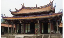 孔廟位于大同區大龍街,創建于清光緒元年(公元一八七五年)臺灣北部設置臺北府,當府城于光緒五年(公元一八七九年)動工,隨即在城內南門內建造文武廟,兩座廟皆朝南,文廟在左,武廟在右,即是臺北府的孔廟。 創建期間,在光緒二十年(公元一八九四年)中日甲午戰爭時間,發生了臺灣割讓給日本,第二年日軍進占臺灣,開始了日據時期的年代。至光緒三十三年(公元一九0七年)日本人為建立日語學校,故將孔廟拆除,并在此建立了第一高等女子學校.